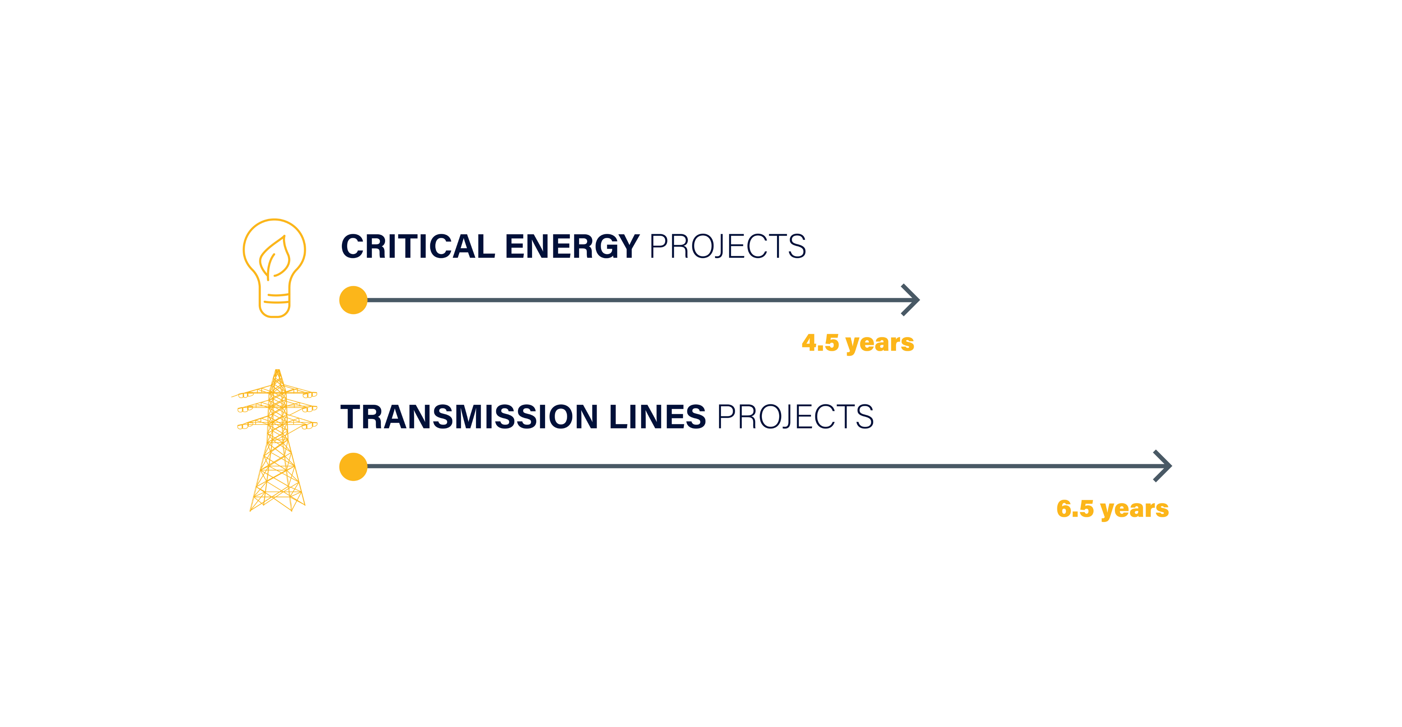 U.S. electricity demand is projected to grow 35–50% by 2040, driven by AI, manufacturing, and population growth, yet permitting for critical energy projects still takes an average of 4.5 years, and 6.5 years or more for transmission lines.