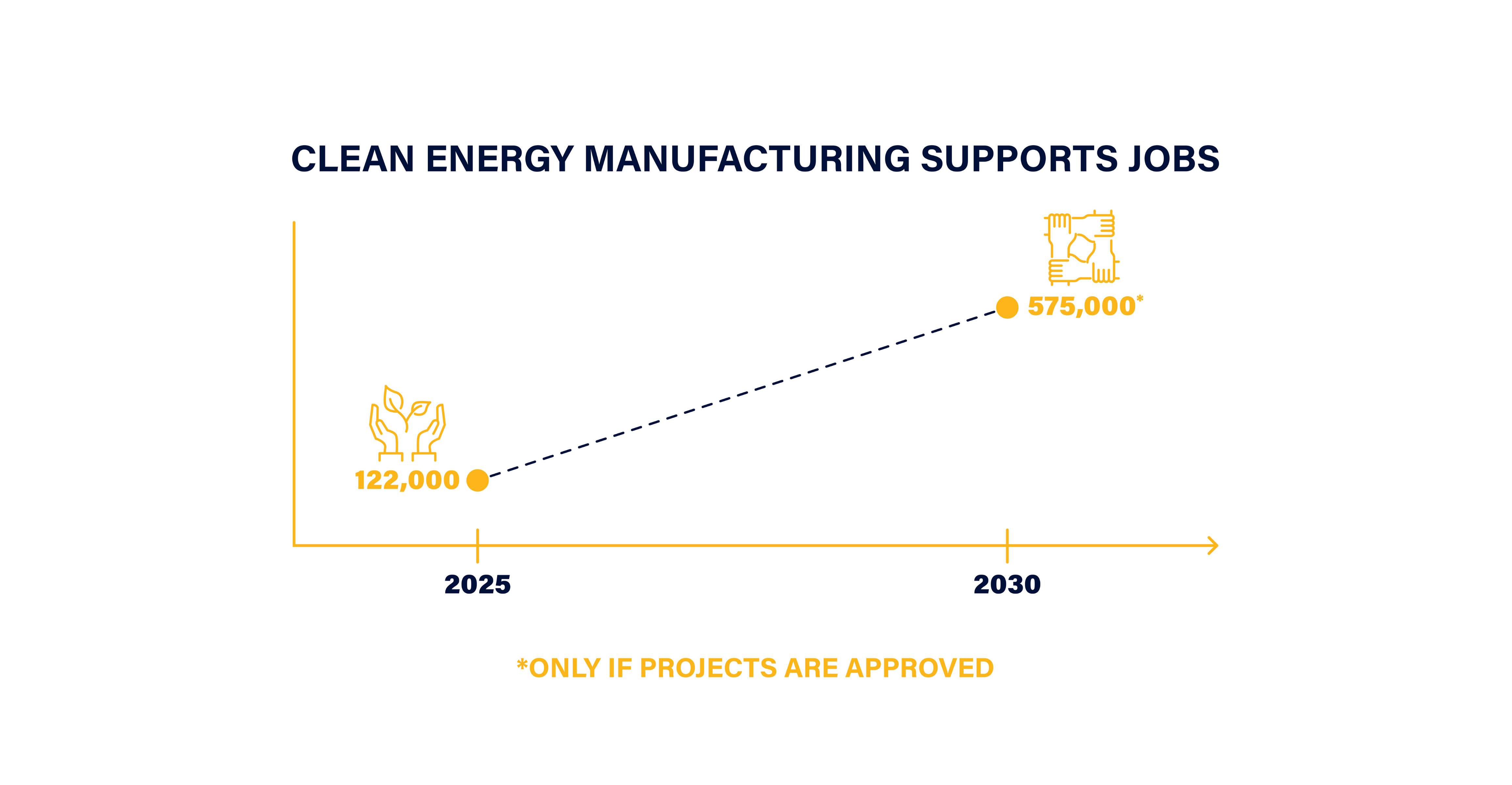 These delays don’t just stall progress: they slow job growth, raise costs, and weaken America’s energy leadership. Clean energy manufacturing supports 122,000 American jobs today – and could support 575,000 by 2030 – but only if we eliminate unnecessary permitting delays.
